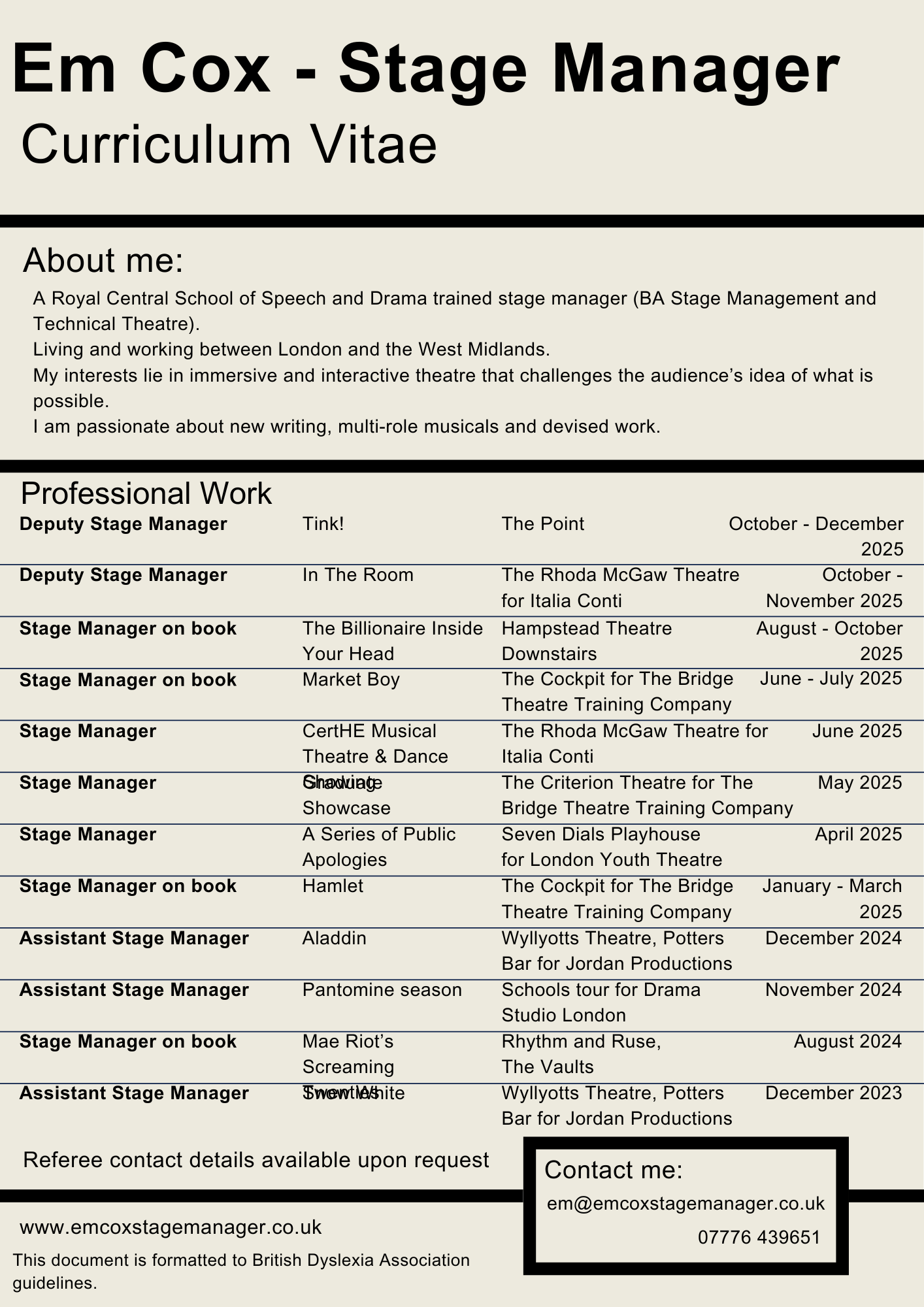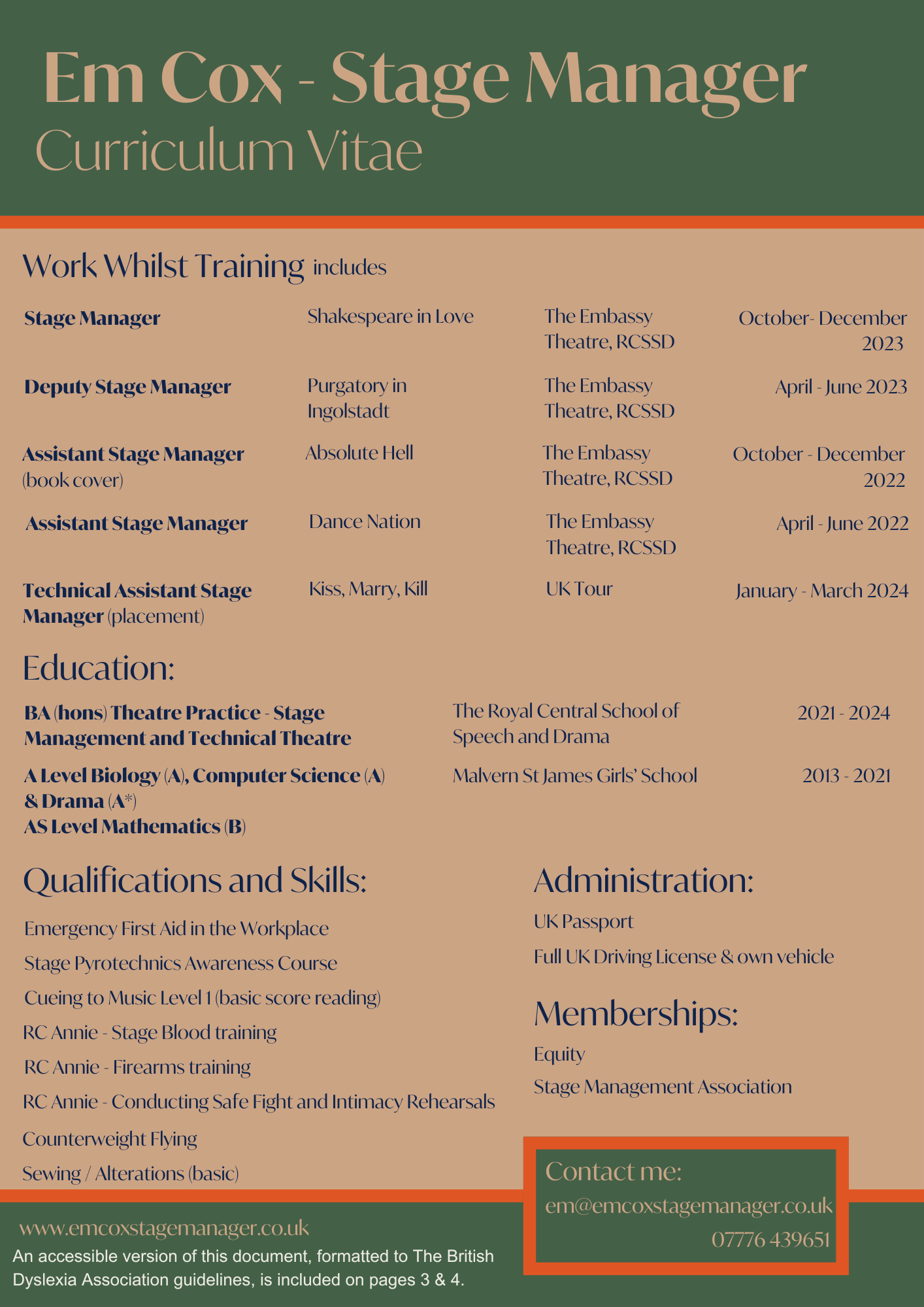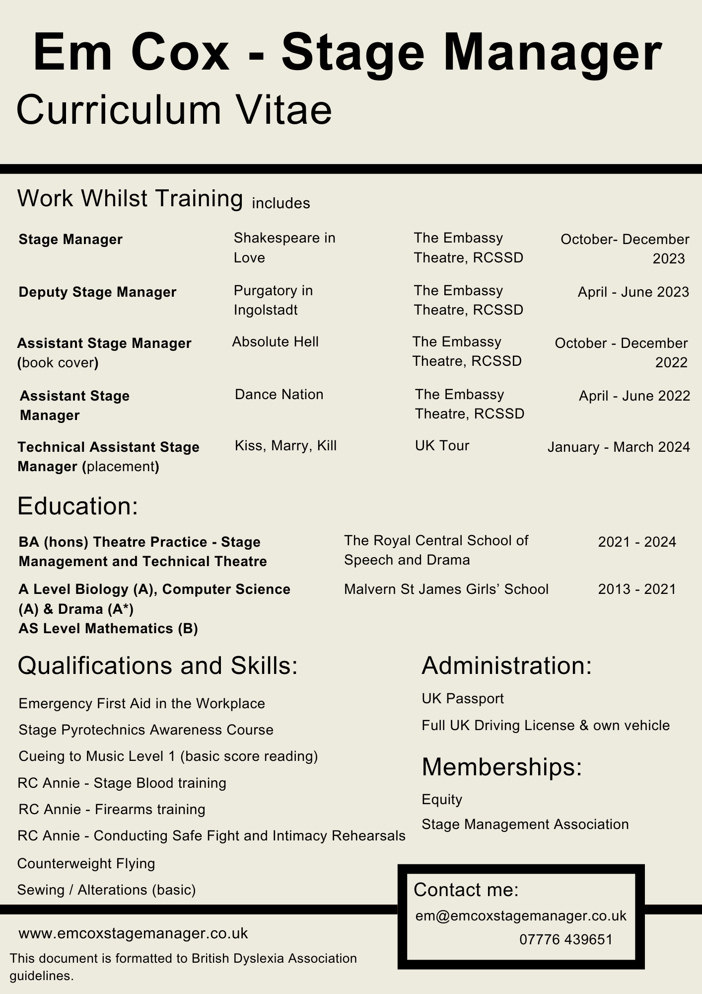 Em Cox - Stage Manager